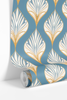 Elevate your space with the timeless elegance of Gilded Grove wallpaper. Inspired by Art Deco motifs, this striking geometric pattern features a sophisticated blend of deep blue, shimmering gold, and crisp white, creating a bold yet refined look. The fan-shaped flourishes evoke vintage luxury, perfect for adding a touch of Gatsby-era glamour to accent walls, furniture, and décor projects. With its easy peel-and-stick application, this renter-friendly contact paper brings effortless sophistication to any setting.