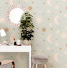 Mint Floral Golden Stars Moon Sun Boho Wallpaper Peel and Stick Wallpaper Removable Wallpaper Wall Decor Home Decor Wall Art Room Decor 888A
