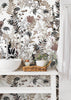 elegance with a delicate dance of botanicals in soothing earthy hues. Featuring intricate leaves, blooms, and stems in muted tones of taupe, blush, and charcoal, this wallpaper brings a natural calm and timeless appeal to any space. The airy white background enhances its lightness, while the fine detailing offers depth and visual texture. Perfect for modern farmhouse interiors, minimalist sanctuaries, or cozy retreats, Whispered Meadow blends sophistication and warmth in a beautifully organic way.