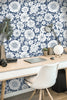 Wallpaper Peel and Stick Wallpaper Blue and White Stamped Floral Removable Wallpaper Wall Decor Home Decor Wall Art Room Decor 3744