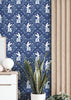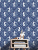 Wallpaper Peel and Stick Wallpaper Blue White Bunnies with Floral Removable Wallpaper Wall Decor Home Decor Wall Art Room Decor 3765