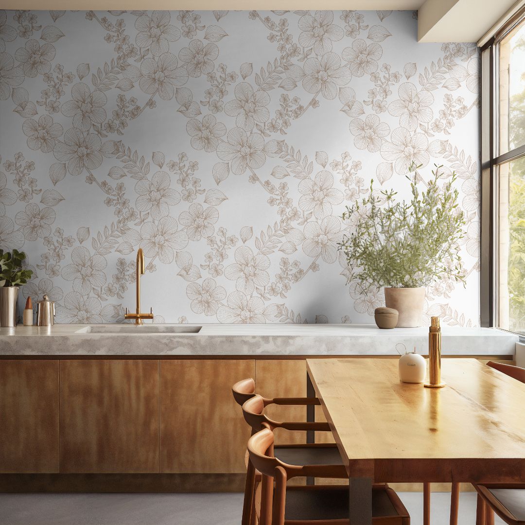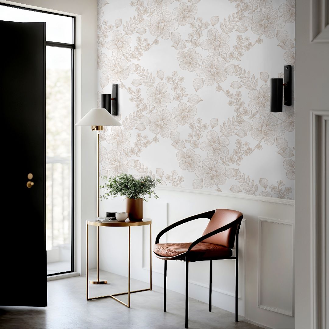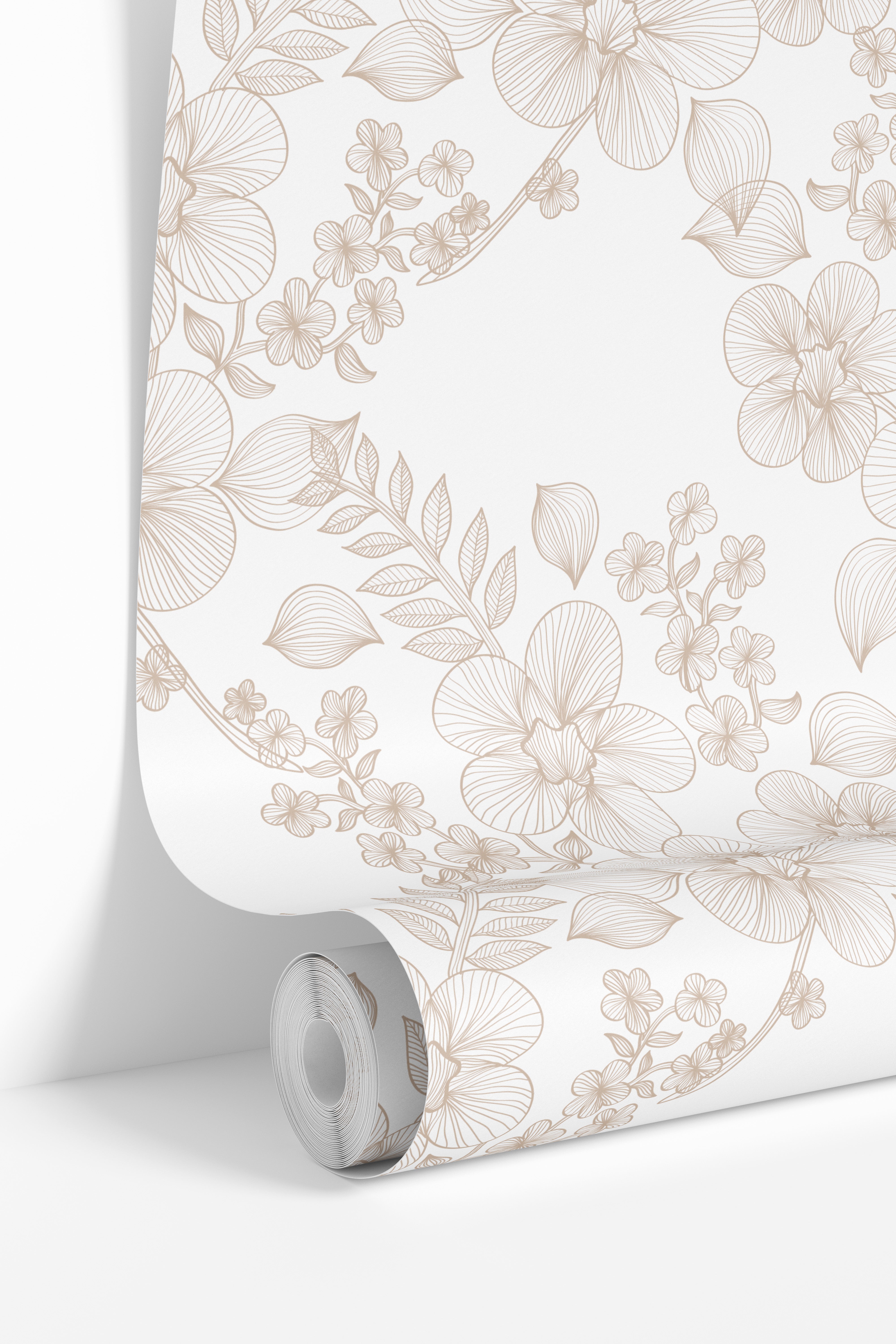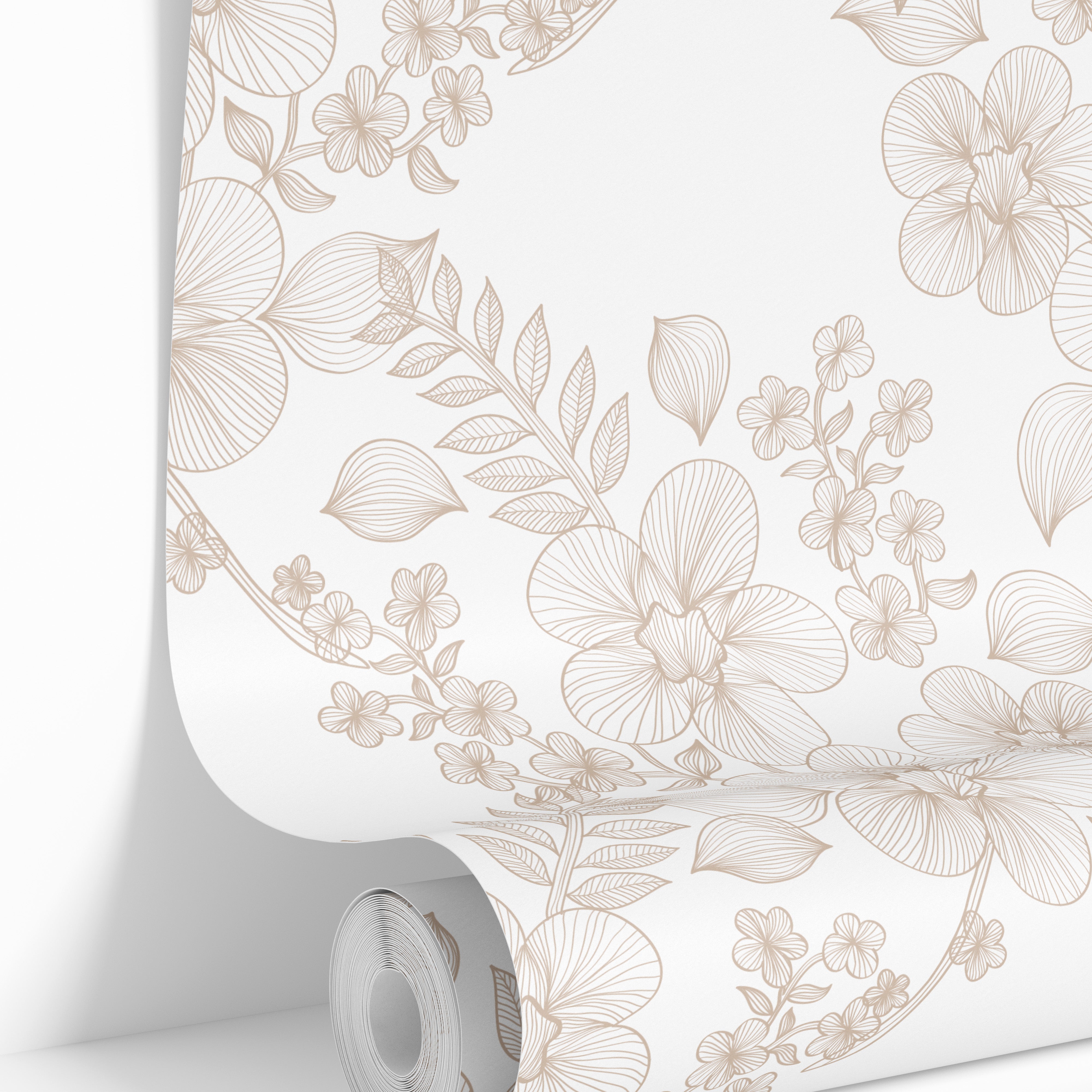 Wallpaper Peel and Stick Wallpaper Tan Cream Floral Outline Removable Wallpaper Wall Decor Home Decor Wall Art Room Decor 3873