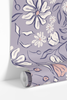 Lavender Lullaby wallpaper brings a soothing botanical touch to your nursery or bedroom, blooming with hand-drawn white daisies and blush pink flowers across a soft purple background for a dreamy, calming accent.
