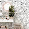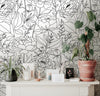 Wallpaper Peel and Stick Wallpaper Black White Large Floral Outline Removable Wallpaper Wall Decor Home Decor Wall Art Room Decor 914