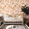 Create a dreamy floral escape with Golden Glee, a delicate wallpaper in blush pink, layered with hand-drawn daisies and golden leaves. Ideal for nursery walls, playrooms, or soft boho spaces, this pattern balances bold design with subtle earth tones for a charming, modern touch. Perfect for adding personality and a gentle nature theme to your little one’s room.