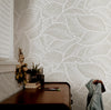 Still Canopy – 2031 is a beige and white tropical wallpaper designed to bring calm and balance into your space. With its soft palm frond motif and neutral tones, this nature-inspired wall covering adds a modern, organic feel to bedrooms, living rooms, and wellness spaces. The oversized leaf pattern offers a sense of openness and minimalism while maintaining visual interest. Whether used as a full-room wrap or a feature wall, this wallpaper complements boho, Scandinavian, and coastal interiors beautifully. Printed on high-quality material with clean lines and seamless tiling, it's the perfect way to transform your walls with effortless elegance.
