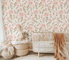 Little Bloom Field Wallpaper – 2237 features soft blush flowers paired with airy sage green stems on a warm neutral background, creating a gentle, calming nursery design that feels timeless rather than themed. The repeating floral pattern adds visual interest without overwhelming the space, making it ideal for nurseries, toddler rooms, or any room where a soft, nature-inspired atmosphere is desired. Designed to age beautifully as your child grows, this wallpaper offers a refined, peaceful backdrop that works seamlessly with neutral woods, woven textures, and soft textiles.
