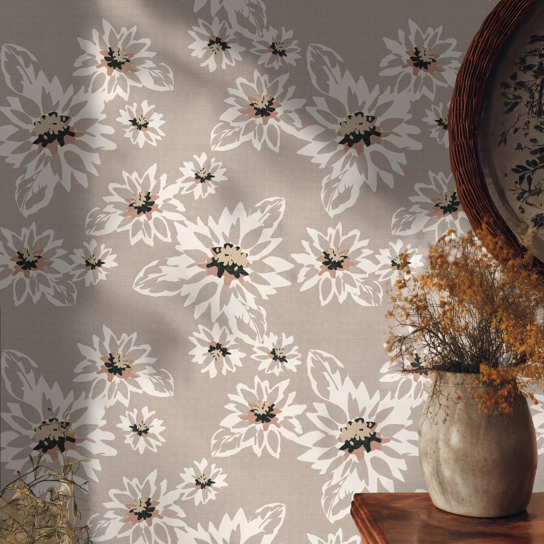 Silken Bloom Wallpaper – 2201 is a luxurious floral design created for refined, elevated interiors. Soft ivory blossoms drift across a warm linen-beige backdrop, layered with subtle taupe and muted blush accents that add depth without overwhelming the space. The composition feels airy and balanced, offering visual interest while maintaining a calm, tailored aesthetic. Ideal for dining rooms, living areas, bedrooms, and sophisticated feature walls, this wallpaper brings timeless elegance and a sense of quiet luxury to both modern and classic interiors.