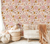 Sweetbriar Nursery Wallpaper – 2186 features a softly illustrated floral pattern composed of blush pink blooms, warm mustard roses, delicate peach accents, and fine cocoa brown linework set against a light ivory background. The design feels calm and comforting without appearing themed or juvenile, making it well suited for nurseries and family spaces where a gentle, timeless atmosphere is desired. The balanced scale and warm palette allow the pattern to transition beautifully as a room evolves, pairing naturally with light woods, woven textures, and neutral furnishings.