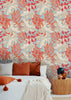Orange Floral Wallpaper | Adhesive Wallpaper | Peel And Stick Wallpaper | Removable Wallpaper | Wall Paper Peel And Stick Mural 995