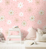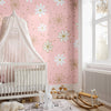 Pink Golden Floral Boho Wallpaper | Girls Nursery Wallpaper | Kids Wallpaper | Childrens Wallpaper | Peel Stick Removable Wallpaper | 907