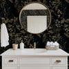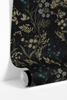Moonlit Foliage blends vintage wildflowers with a moody black background for a timeless botanical aesthetic. Whether in a bedroom, living space, or office, this floral wallpaper adds depth, warmth, and sophistication.