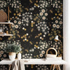 Wallpaper Peel and Stick Wallpaper Dark Golden and Cream Floral Bee Black Removable Wallpaper Wall Decor Home Decor Wall Art Room Decor 1247