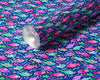 Roll of tropical fish contact paper with coral, aqua, and violet fish swimming across a deep blue background
